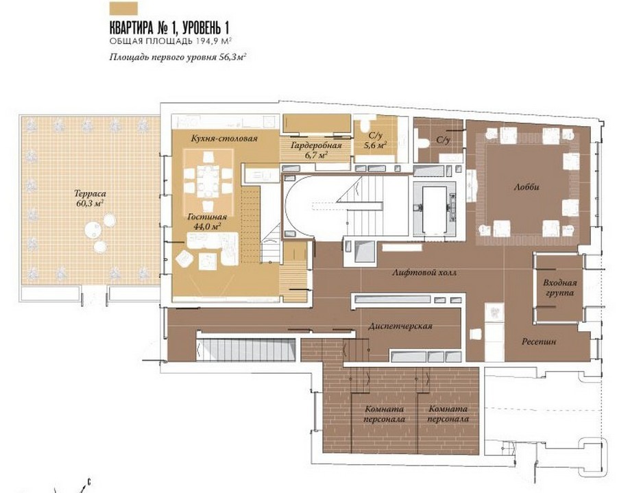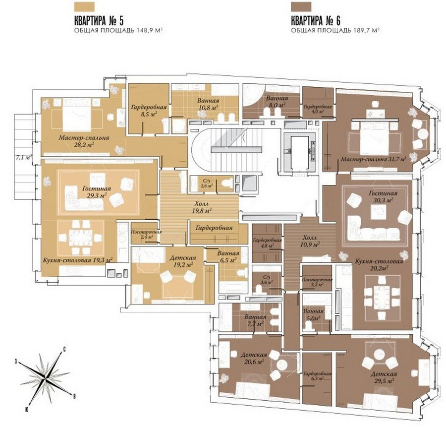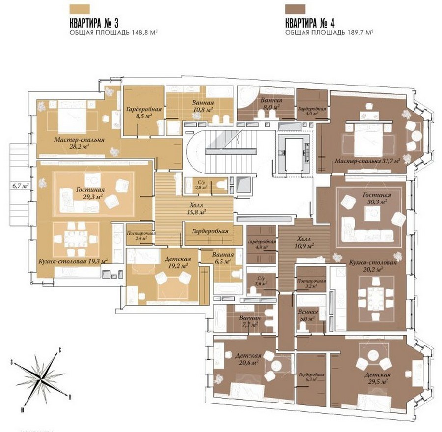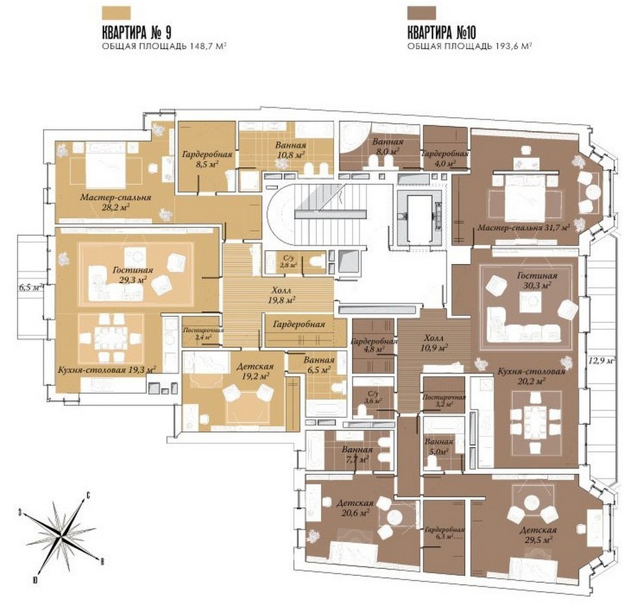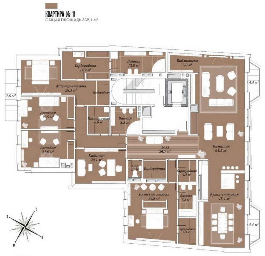 В восьмиэтажном доме всего 12 квартир. Планировка в них свободная, а площадь варьируется от 150 до 340 кв.метров. На самом верху расположился огромный пентхаус, из окон которого открывается вид на исторический центр столицы. В нем, а также в больших квартирах верхних этажей установлены дровяные камины.