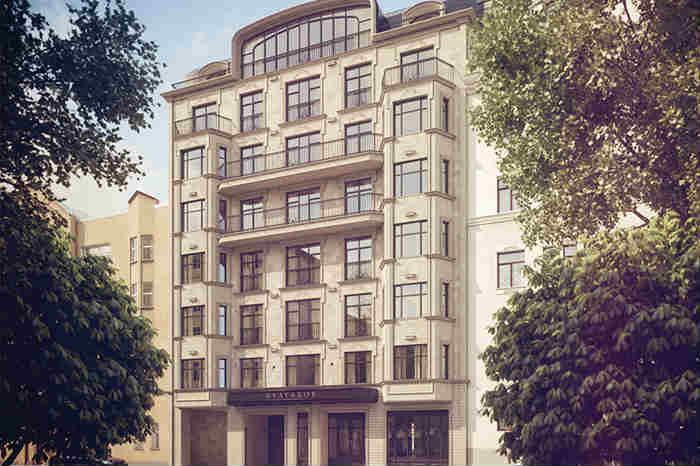 Создавая этот проект, архитекторы постарались, чтобы он идеально вписался в окружающую его историческую застройку — строгий стиль, огромные окна, элегантные французкие балконы.