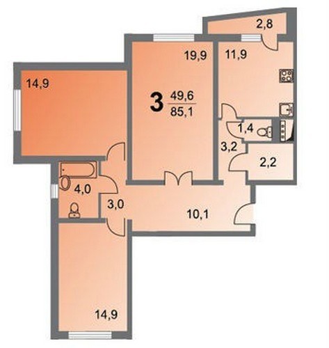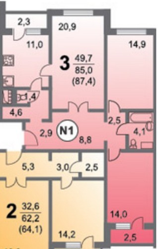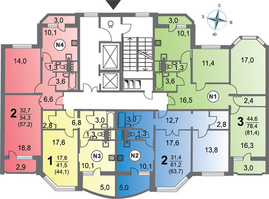 - 3-комнатные- от 81 до 83 кв. м ( 12 вариантов планировок)
