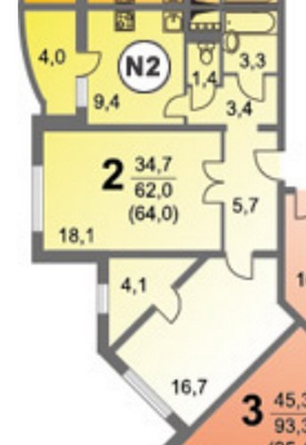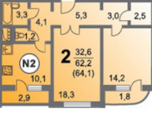 - 2-комнатные — от 64 до 64, 5 кв.м.(5 вариантов планировок)