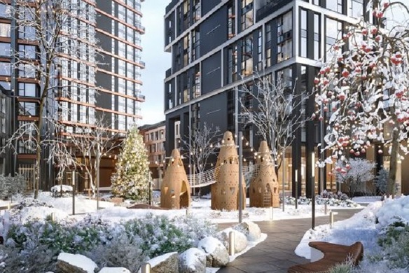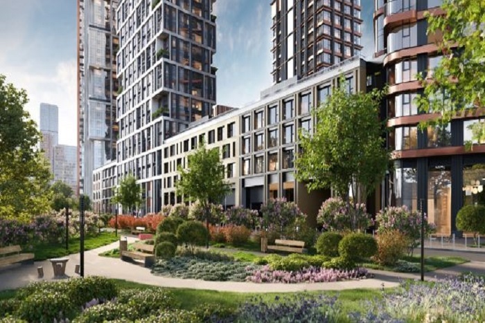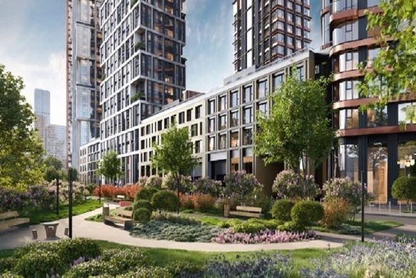Строительство ведется в окружении парковых зон и набережных – девять многосекционных корпусов высотой от 10 до 48 этажей возводятся по авторскому проекту, привлекая внимание необычными силуэтами и оригинальными фасадными решениями.
