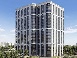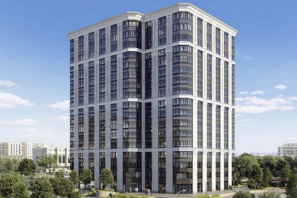 На закрытой территории возводится 17-этажное монолитное здание, привлекающее внимание необычным силуэтом, фасадами с элементами сплошного остекления, панорамными окнами.