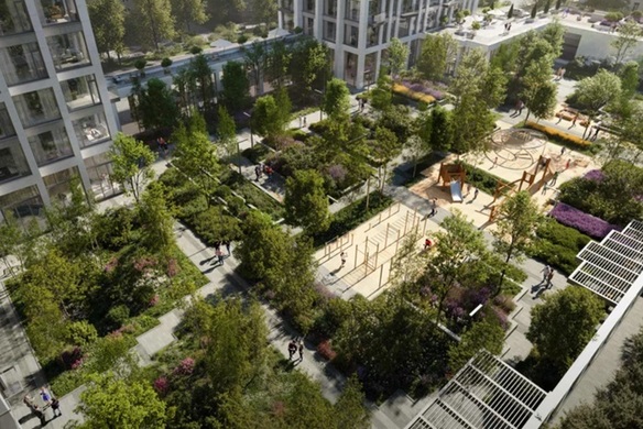 В закрытом внутреннем дворе создается благоустроенный ландшафтный парк . Внутренняя инфраструктура проекта включает фитнес-зал, отапливаемый подземный паркинг, лаундж-зоны, коворкинг, игровую комнату для детей и общественную гостиную.