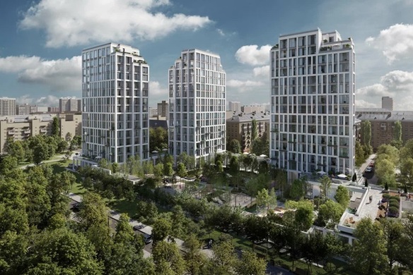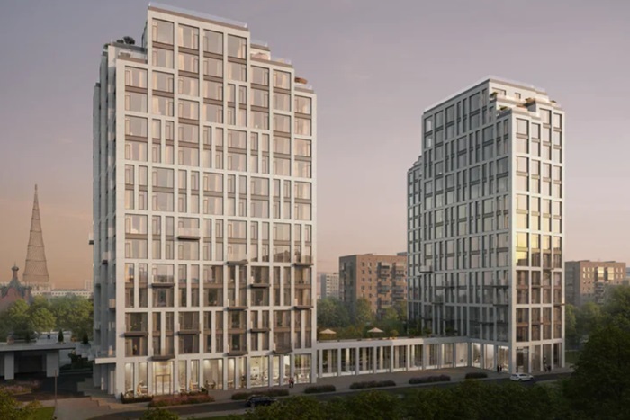 Три 15-этажных здания с уникальной современной архитектурой от московского бюро «Остоженка» будут расположены на территории в 1 гектар. Галерея, соединяющая корпуса, позволит жильцам перемещаться без выхода на улицу. Воздушный и легкий облик зданиям придают панорамные окна, а утепленные фасады выполнены из природного камня в светло-серых тонах.