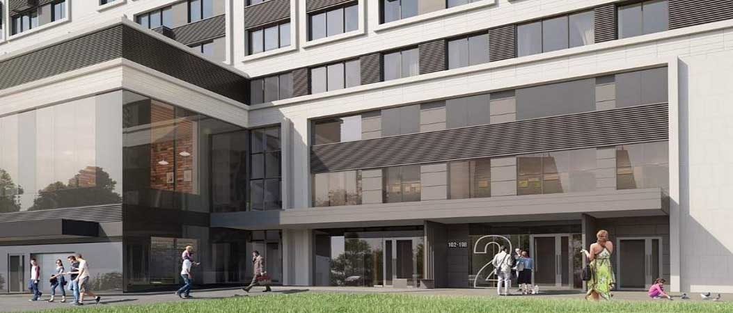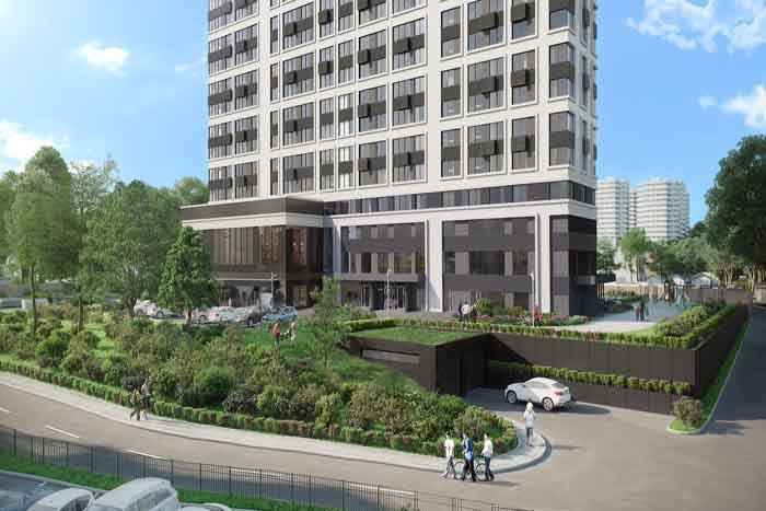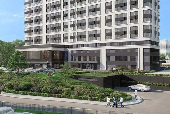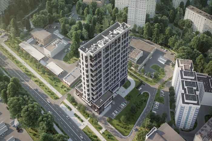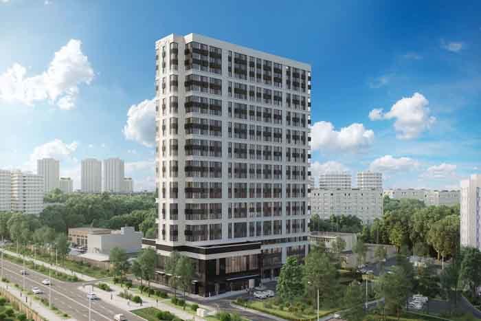 Авторство проекта принадлежит известному архитектурномы бюро: 22-этажный монолитный дом со стилобатной частью выдержан в современном стиле, привлекая внимание необычными решениями фасадов и большими окнами.