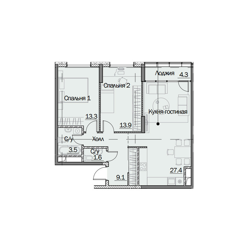 Застройщик позиционирует планировочные решения недвижимости как «евроформат» - объединенные кухно-гостиные (их площадь даже в однокомнатном жилье достигает 20 кв. метров), изолированные спальни, габаритные прихожие, дополнительные помещения-гардеробные.
