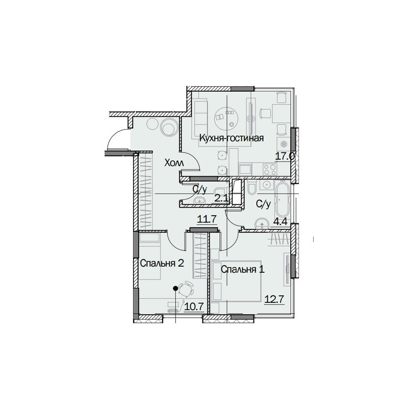 В каждом типе есть выбор планировок, значительно различающихся по площади. Предполагается, что реализовываться недвижимость будет как в «черновом» варианте, так и с отделкой.