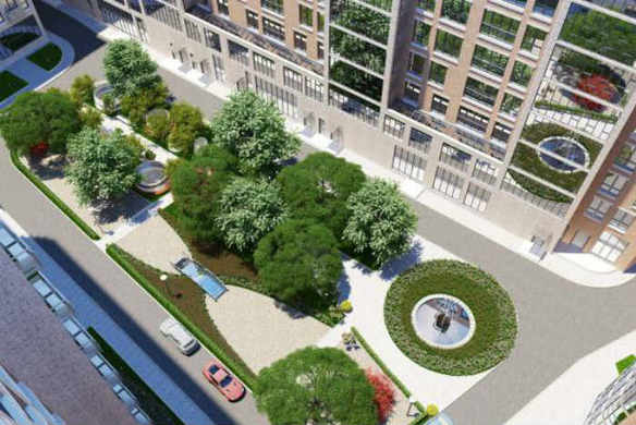 Внутренний двор новостройки огорожен и озеленен. Организованы удобные подъездные пути со стороны Малой Пироговской улицы. В рекреационной зоне установлены скамейки, организованы детские площадки со спортивными снарядами и городками. По периметру ведется круглосуточное видеонаблюдение.