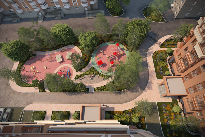 В вестибюлях, помимо уже ставшего традиционным помещением для консъержа предполагается, зона ресепции, колясочная с поддоном для смыва грязи с колес колясок и лап домашних животных, гостевой санузел. То есть реализуются не просто современные, а приспособленные к нашим погодным условиям стандарты жилого комплекса. В подземной части комплекса — автостоянка, связана лифтами с жилой зоной. (Кстати, внутренний двор запроектирован без сквозного проезда автотранспорта, закрытым и огороженным.)
