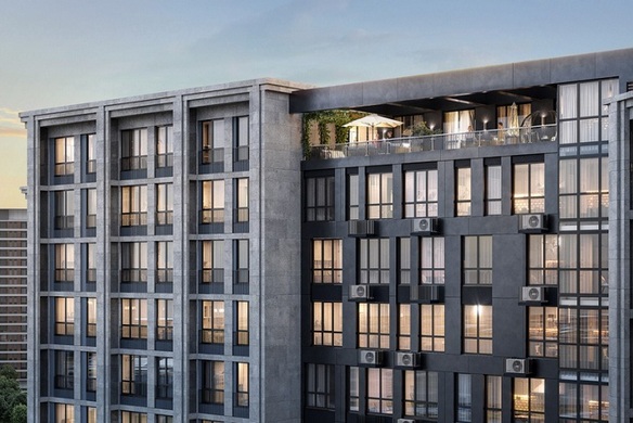Двухподъездное 16-этажное здание выдержано в стиле промышленной архитектуры, привлекая внимание огромными окнами, строгими серыми фасадами, дизайнерской отделкой просторного лобби. Территория закрыта от посторонних и находится под охраной.