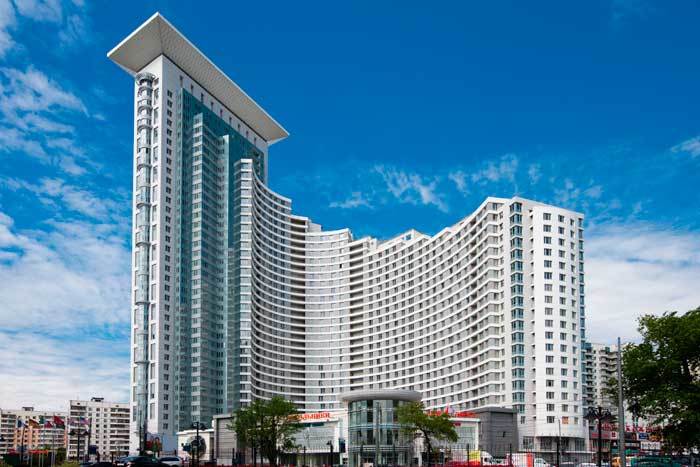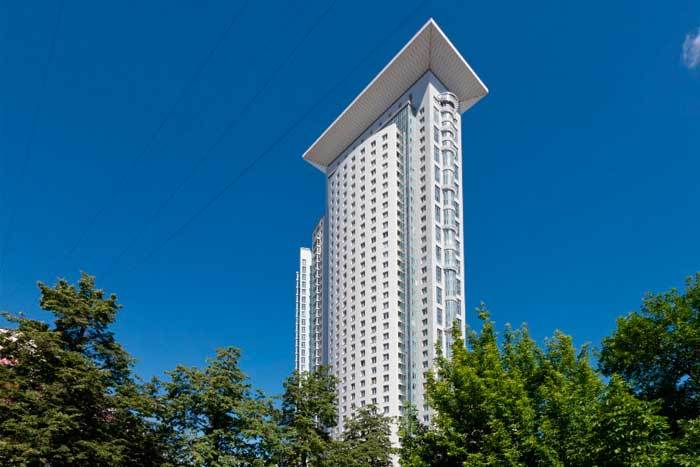 Проезд на территорию комплекса осуществляется исключительно по пропускам. Потребителям представлены 1-5-комнатные квартиры площадью 90-240 кв.м. Планировка – свободная. В апартаментах устанавливаются биметаллические радиаторы Глобал, выполняется пластиковая разводка. Имеется четырехуровневый подземный паркинг на 684 машиноместа. В подъездах функционируют скоростные лифты повышенной грузоподъемности.