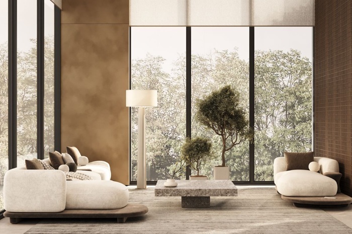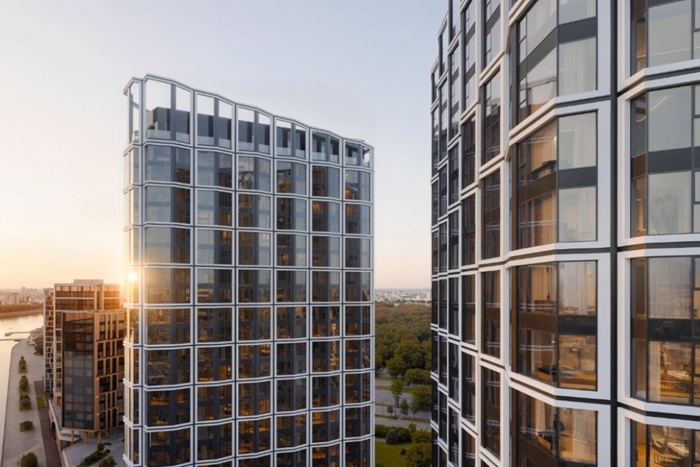Комплекс включает три корпуса высотой 24–27 этажей (Aria, Aqua, Terra). В каждом из корпусов предусмотрено авторское лобби с зоной ресепшн, секцией для хранения колясок и велосипедов, а также комнатой с лапомойкой для домашних питомцев.