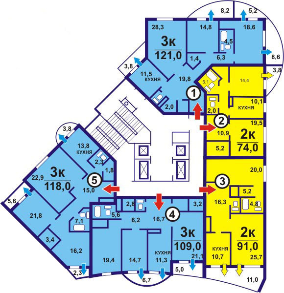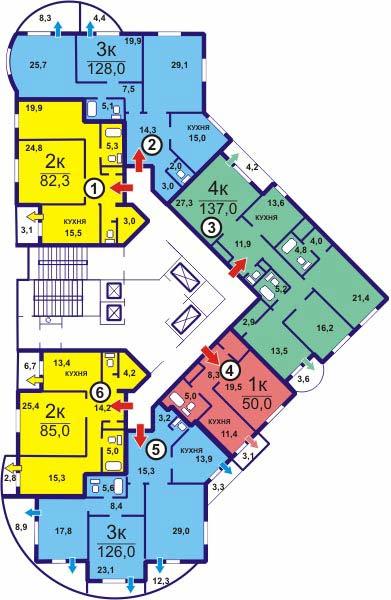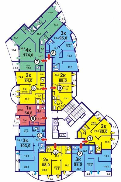 Площадь квартир:51 — 198 м2