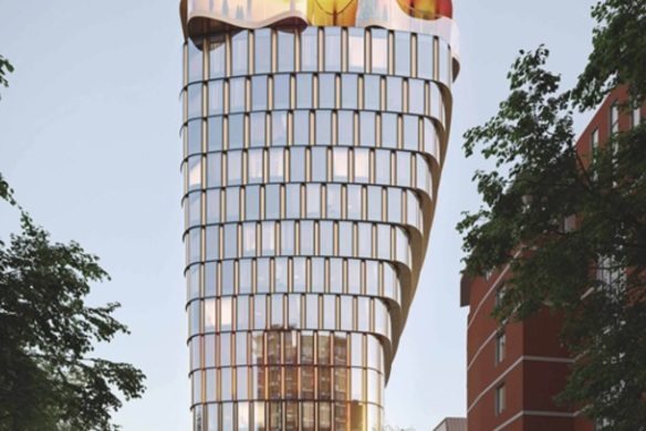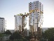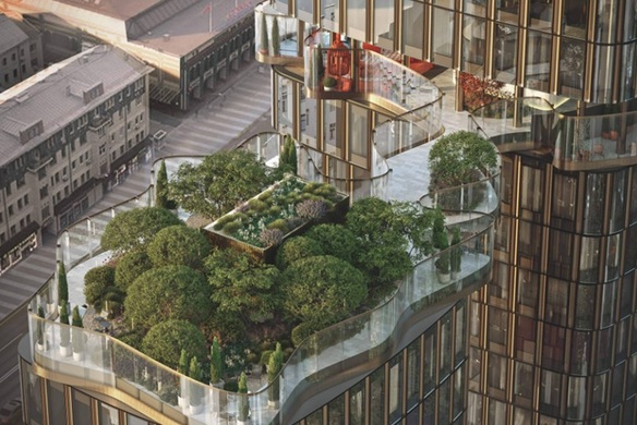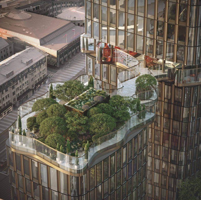 Проект воплощает идею плавной вертикальной динамики, где каждая грань отражает свет и меняет ощущение объёма. Впервые бюро создает дом с полноценным зелёным двором над городом — изысканный баланс геометрии и живой природы.