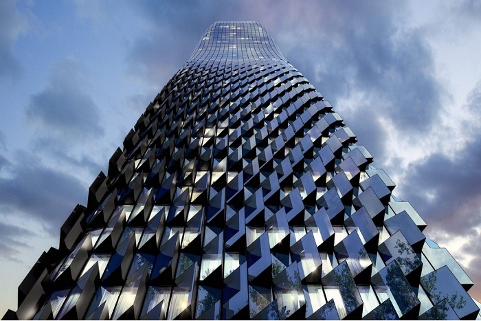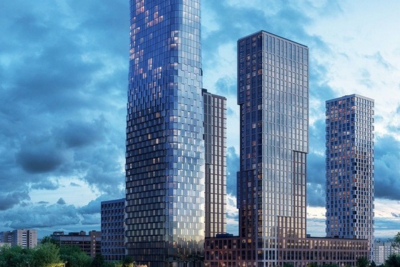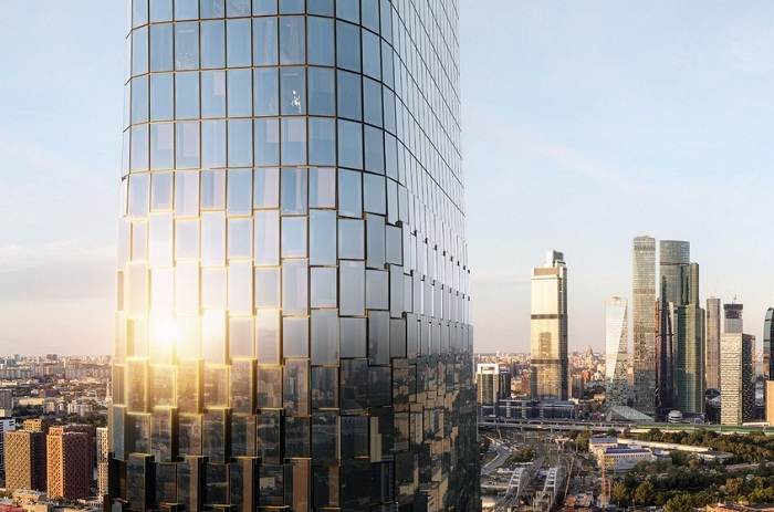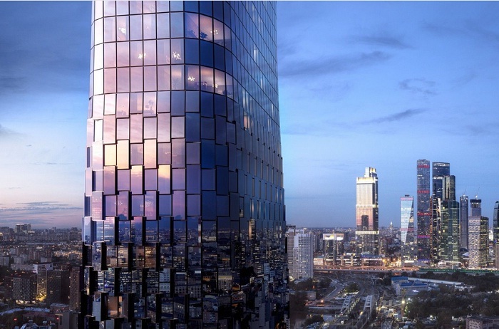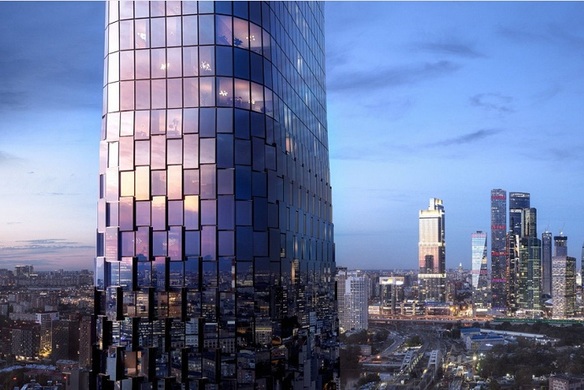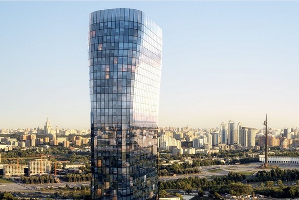 58-этажный небоскреб необычной конфигурации, со сплошным остеклением фасадов, обещает стать настоящим украшением нового микрорайона. Из большинства окон открываются роскошные виды на Поклонную гору, Филевский парк, набережные Москвы-реки.