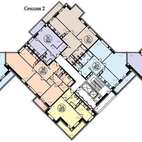 | Площадь 2-комнатных, м2 | 70,9 и 71,9 | 79,4 и 79,6 | 79,4 и 79,6 | - |