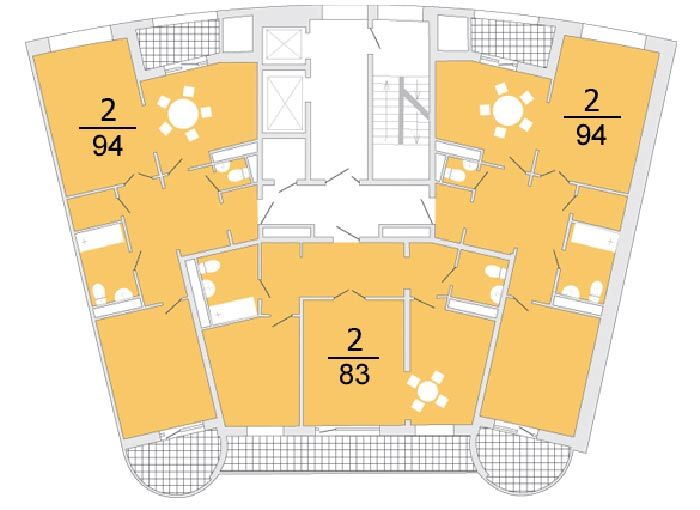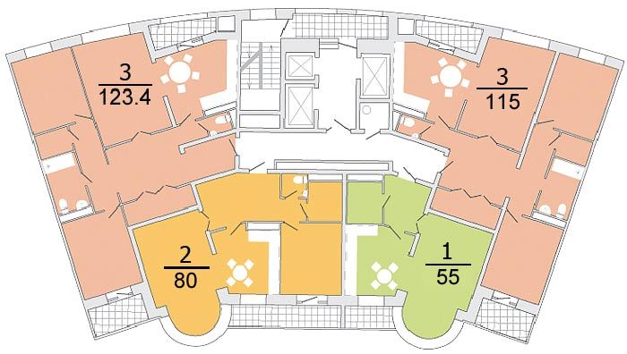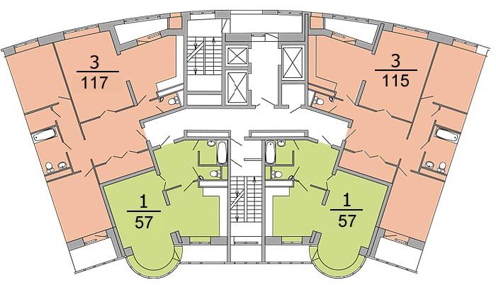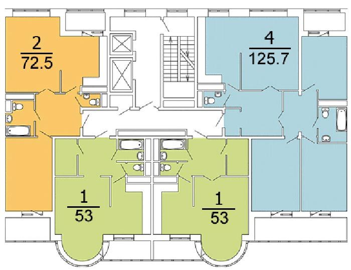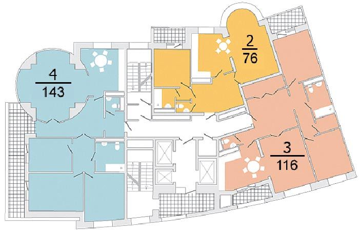 Площадь квартир:43 — 155 м2