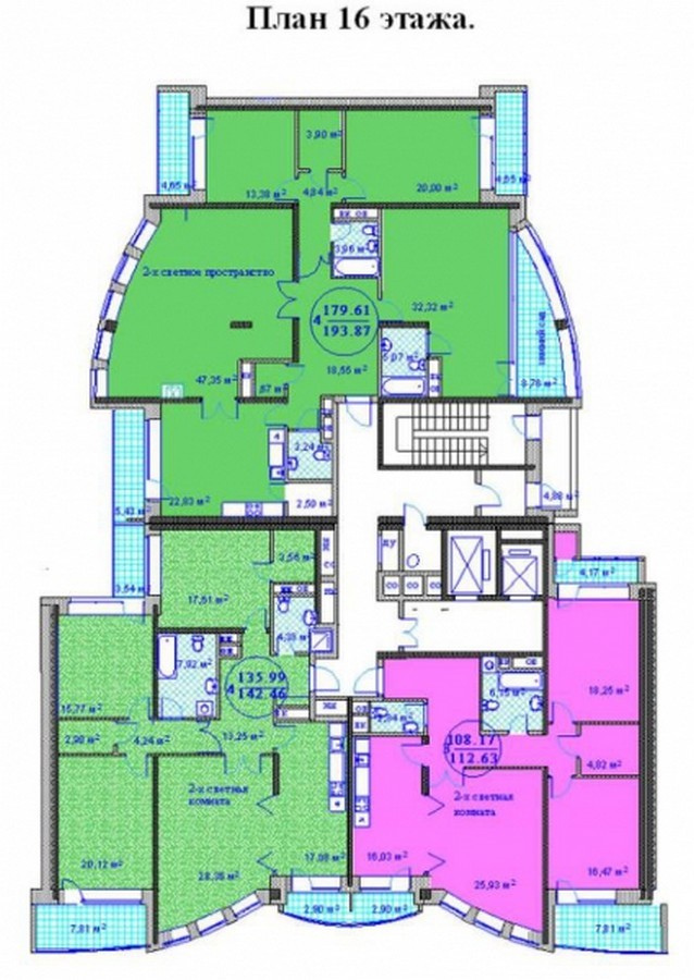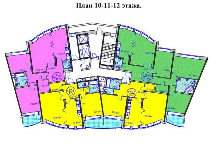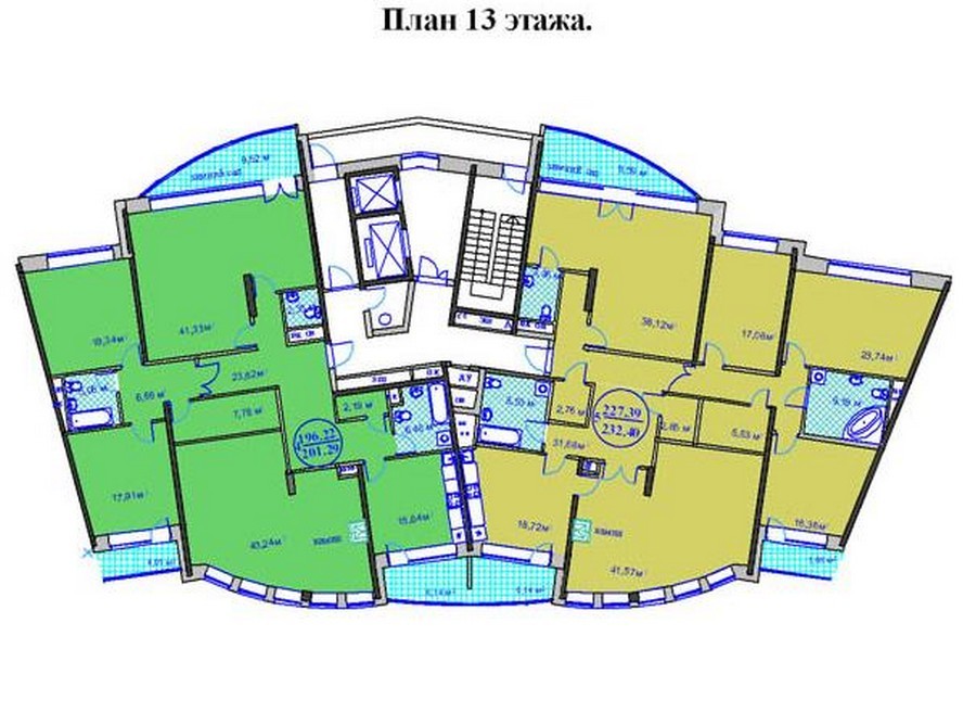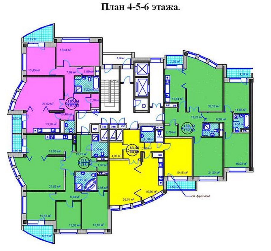 В новостройке размещены квартиры площадью 73,83 - 221,3 кв. м (двухкомнатные квартиры – 73,83 кв. м, 3-комнатные – 106 кв. м, четырехкомнатные – 130 кв. м). В апартаментах устанавливаются стеклопакеты с тройным остеклением, 2 санузла. Дизайн-проектом предусмотрено включение в их планировку лоджий, эркеров, гардеробных. Высота потолков – 3 м. Имеется трехуровневый подземный паркинг.