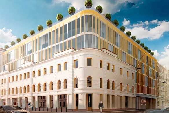 Шестиэтажный дом постройки 19 века реконструируется с сохранением исторического облика, полной заменой инженерных систем и коммуникаций, перепланировкой внутреннего пространства.