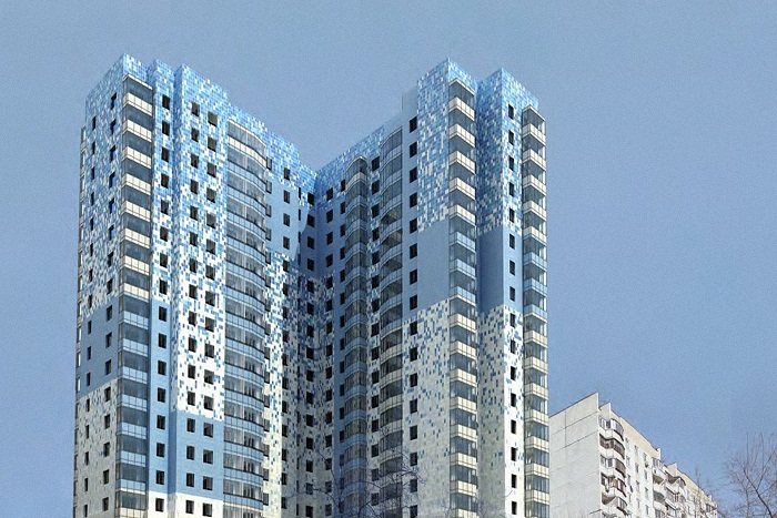 На территории в 0.41 гектара будет построено 25-этажное двухсекционное монолитное здание, привлекающее внимание яркими светлыми фасадами с большими окнами.