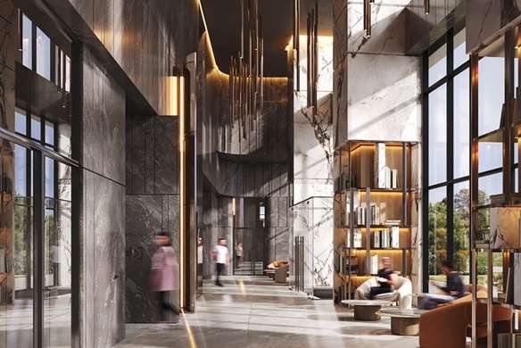 Входная группа клубного дома «Гранд Фили» представляет собой двухсветное лобби с 9-метровым потолком и витражным остеклением, где все продумано для комфортного отдыха жителей: дизайнерская мягкая мебель, тихая библиотека, живые растения, мрамор и натуральный камень в отделке. Здесь круглосуточно работает консьерж-сервис, есть гостевые санузлы, колясочные и лапомойки. Кроме того, у жителей будет доступ к собственной студии йоги.