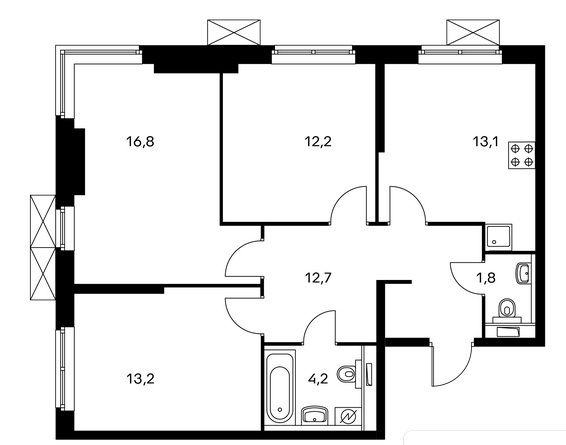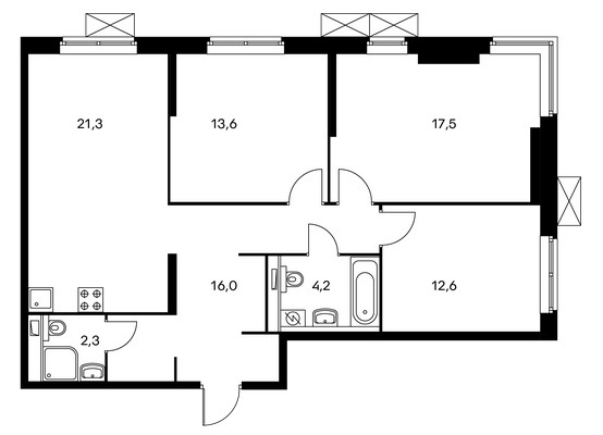 Высота потолков:2.8