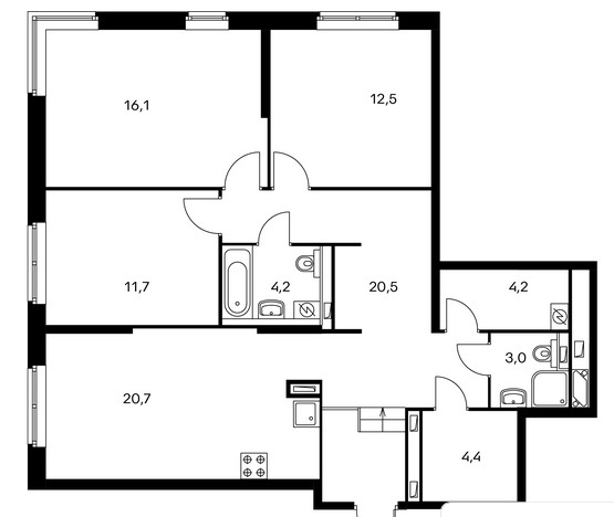 Площадь квартир:25.7 — 123 м2