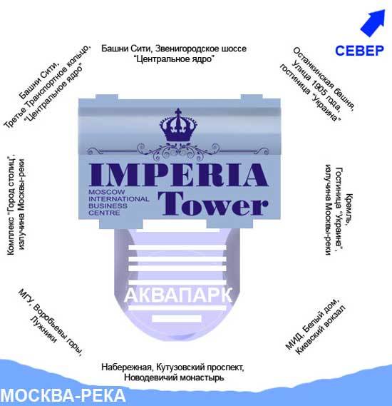 Новостройка «Imperia Tower» является частью бизнес-центра «Москва Сити» и расположена на расстоянии четырех километров от Кремля, на первой линии Москвы-реки.