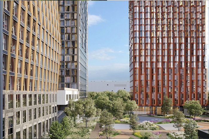 На закрытой, охраняемой территории появится пять «башен» высотой до 55 этажей — здания выдержаны в ярком современном стиле и обещают стать настоящим украшением окружающей застройки. Запланировано два этапа работ, в рамках первой очереди строится три корпуса высотой 23-28 этажей.