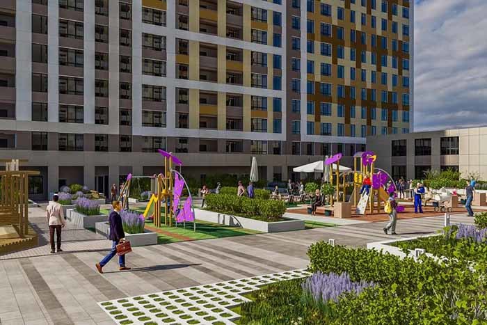 В закрытых зеленых дворах устанавливаются спортивные площадки и детские городки, прокладываются пешеходные бульвары, оформляются уютные места для отдыха.