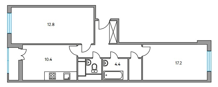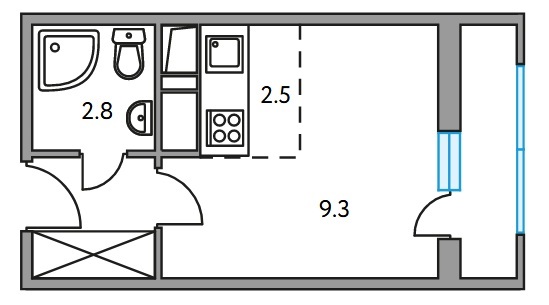 Квартирография тщательно продумана — от студий до трехкомнатных с выбором планировок и площадей в каждом типе. Квартиры довольно компактные, функциональные, с высокими трехметровыми потолками, балконами и лоджиями, большими кухнями.