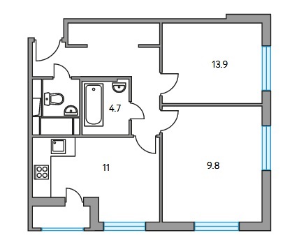 Площадь квартир:19 — 76 м2