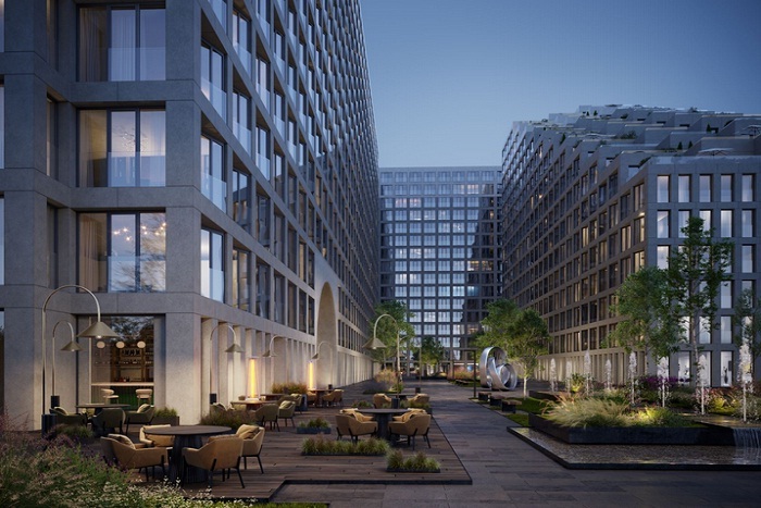 Концепцией проекта предусмотрена обширная собственная инфраструктура — первые этажи отводятся под общественные и коммерческие помещения. Оформляется гранд-лобби с зоной отдыха, будут работать многочисленные сервисные службы. Откроется коворкинг, магазины, зал для фитнеса, медицинский кабинет и многое другое. В закрытом внутреннем дворе проводится озеленение, устанавливается спортивная и детская площадки. Подземный уровень займет вместительный паркинг.