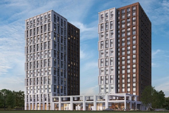 Новый комплекс — две 21-этажных «башни», возводимых на едином стилобате. Общая площадь жилой недвижимости составляет 23000 кв. метров.