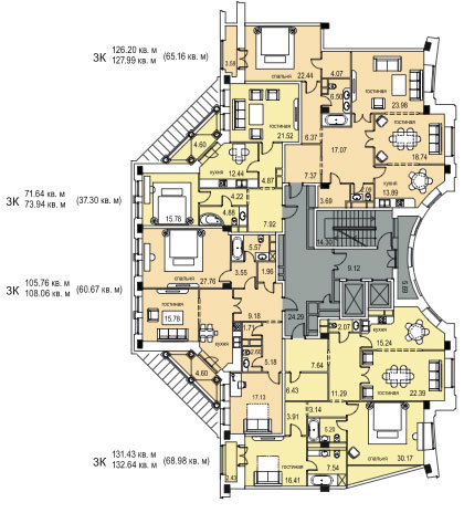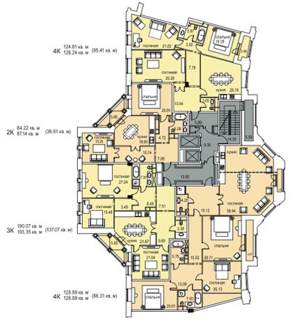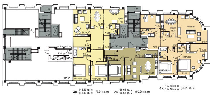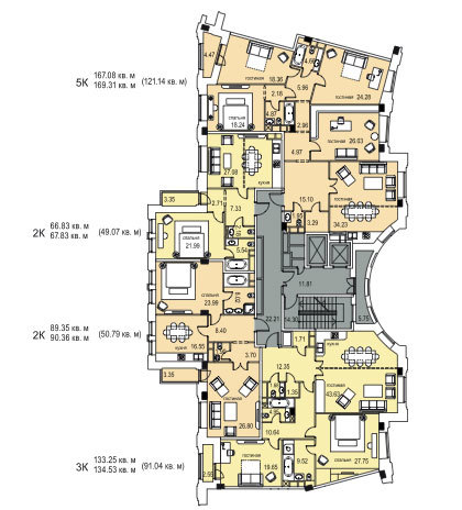 Жилой комплекс состоит семи особняков различной этажности (от 4 до 10) , отличающихся многообразием планировок расположенных в них квартир. В каждом из особняков есть и небольшие квартиры студии - от 45 кв. м, и роскошные двухуровневые пентхаусы, и классические квартиры, состоящие их 2-4 комнат. Каждый покупатель может подобраться для себя идеальное жилье.