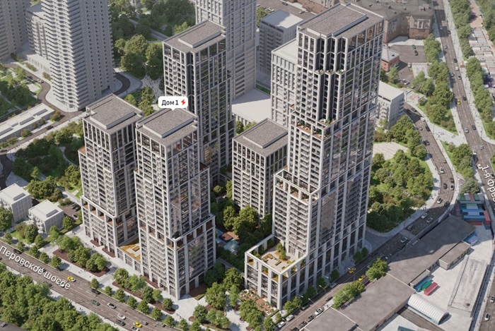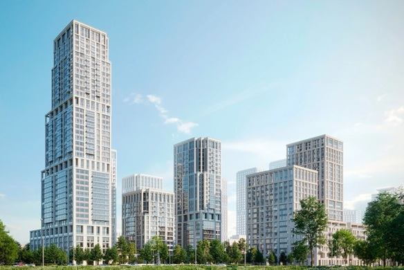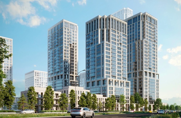 Новый комплекс – пять разновысотных (15-29 этажей) монолитных корпусов, объединенных стилобатой частью. Здания привлекают внимание необычными решениями фасадов, панорамным остеклением, дизайнерскими входными группами.