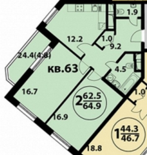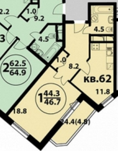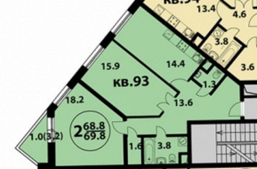 - Двухкомнатных 69-74 кв.м;