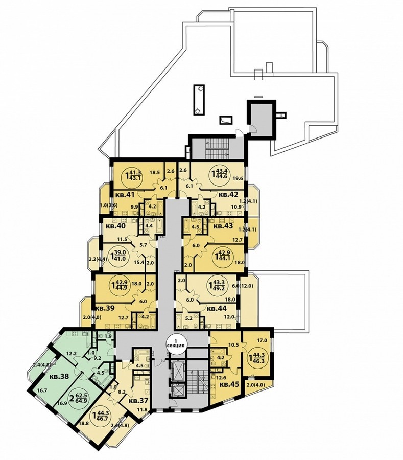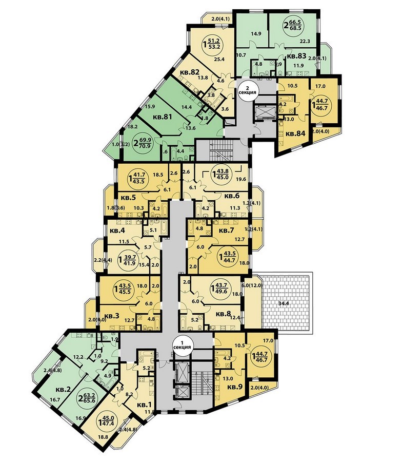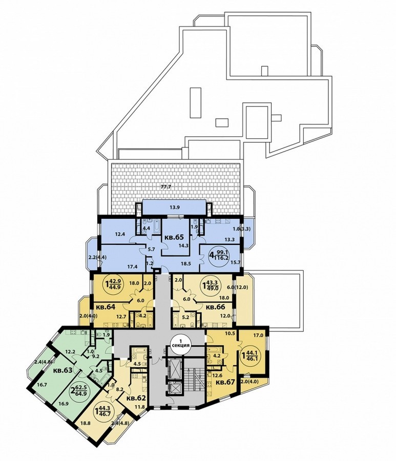 Площадь квартир:41.2 — 116 м2