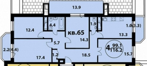 - Четырехкомнатные 97-116 кв.м.