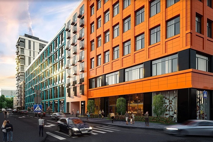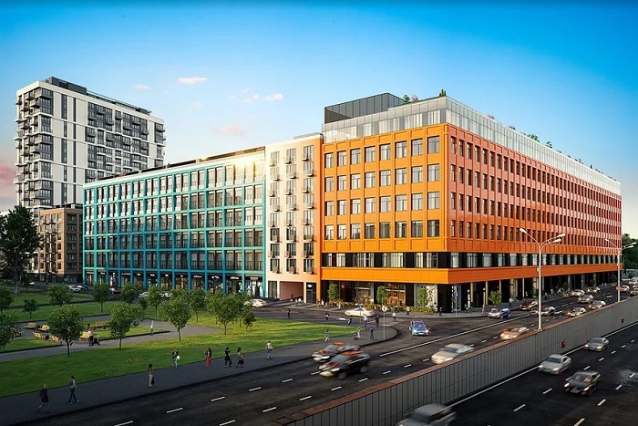 Новый комплекс — 7 ярких зданий, объединенных архитектурной концепцией от бюро Speech. Каждое из семи зданий имеет свой образ и характер, но при этом поддерживает общий стиль европейской архитектуры timeless. Каждый из фасадов уникалет по своим решениям, в отделке просторных входных групп использован мрамор, латунь и декоративные панно. В каждой предусмотрены помещения для хранения колясок и велосипедов, а также комнаты консьержей.