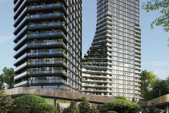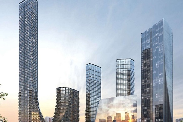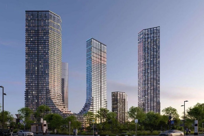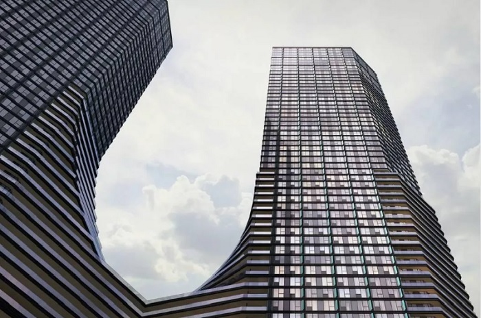 Новый комплекс – две "башни" высотой в 48 и 57 этажей на едином стилобате, привлекающие внимание необычной "уступчатой" архитектурой, обеспечивающей видовые характеристики большинства квартир, сплошным остеклением фасадов, дизайнерскими входными группами.