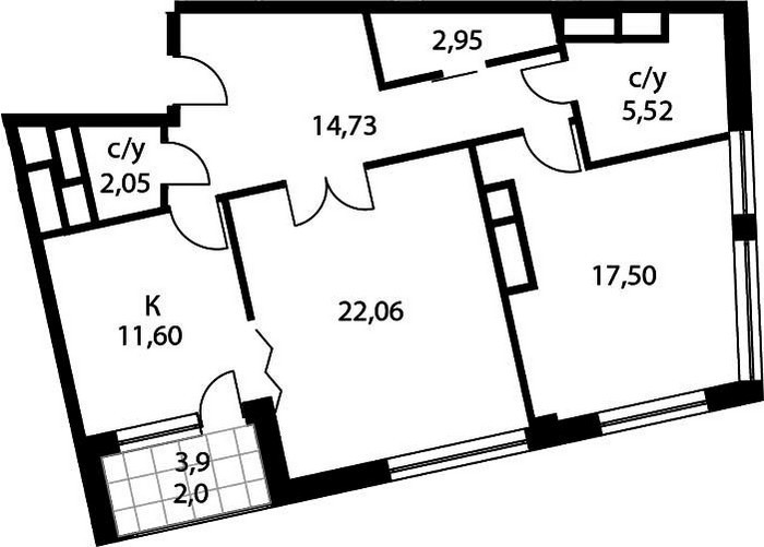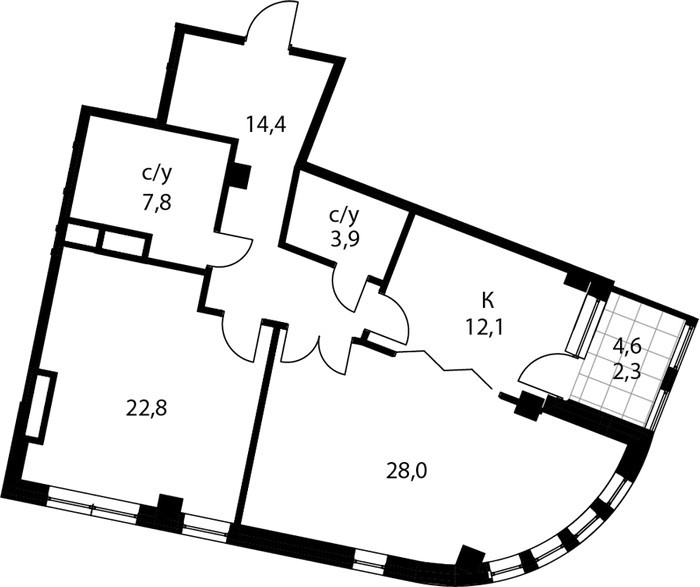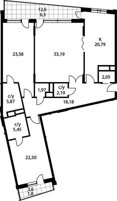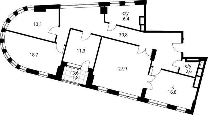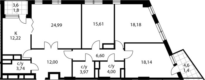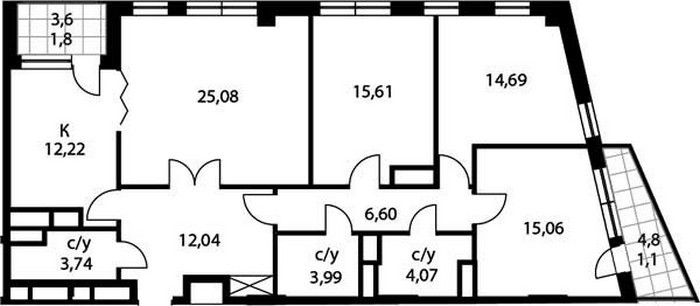 Площадь квартир:43 — 205 м2
