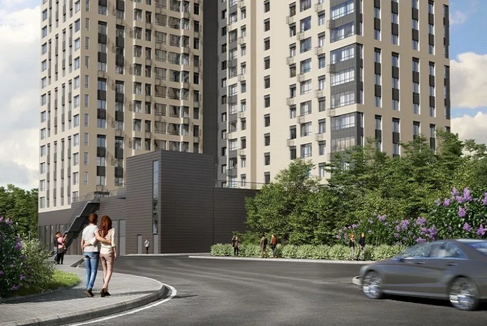 Новый комплекс — 24-этажный монолитный дом с трехуровневым стилобатом — в нем расположится вместительный паркинг. Здание выдержано в современном стиле — светлые фасады, большая площадь остекления, просторные входные группы.