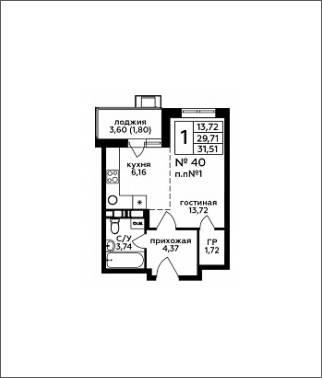 Площадь:31 м2
