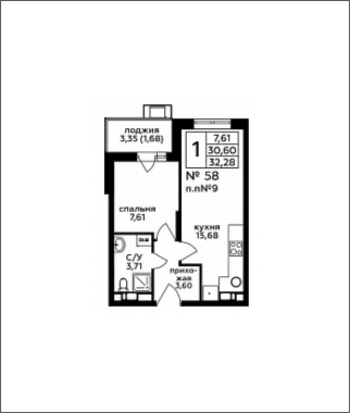 Площадь:32 м2