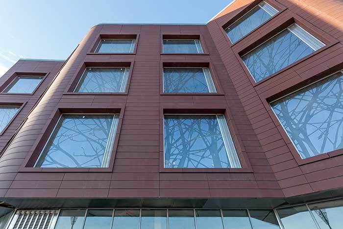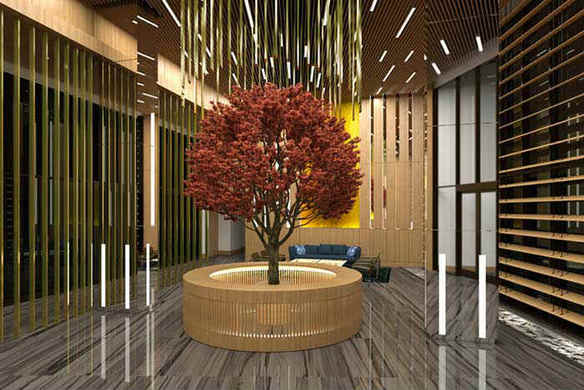 Архитектурное решение также необычно — волнообразный фасад идеально вписывается в линии набережной, из панорамных окон открываются завораживающие виды. Заглянуть внутрь помещений с улицы невозможно — специальная технология делает окна непроницаемыми извне, давая визуальный эффект отражающейся в стекле «кленовой рощи». Это оригинальное решение и дало название комплексу.