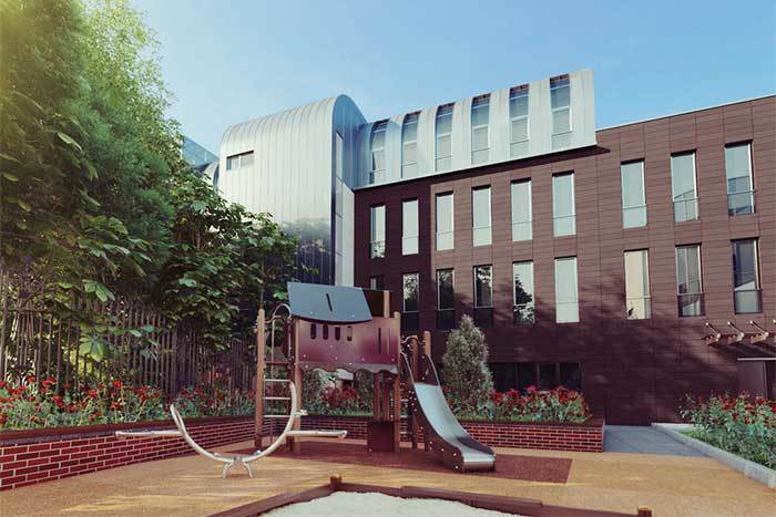 Уникальный проект обеспечивает приватность проживания, практически не встречающуюся в огромном городе — на каждом этаже четырехэтажного многосекционного здания всего по 1-2 квартиры.