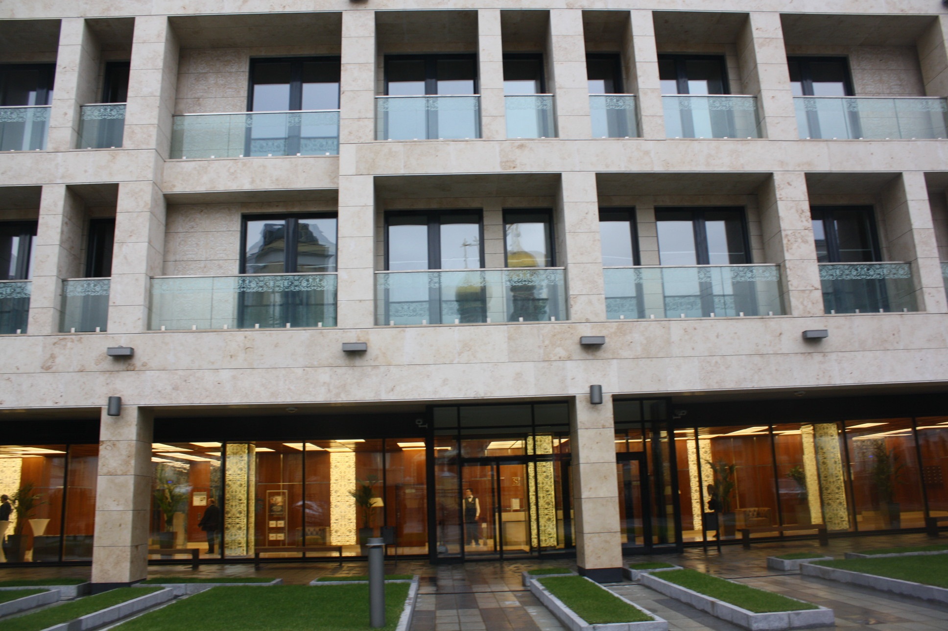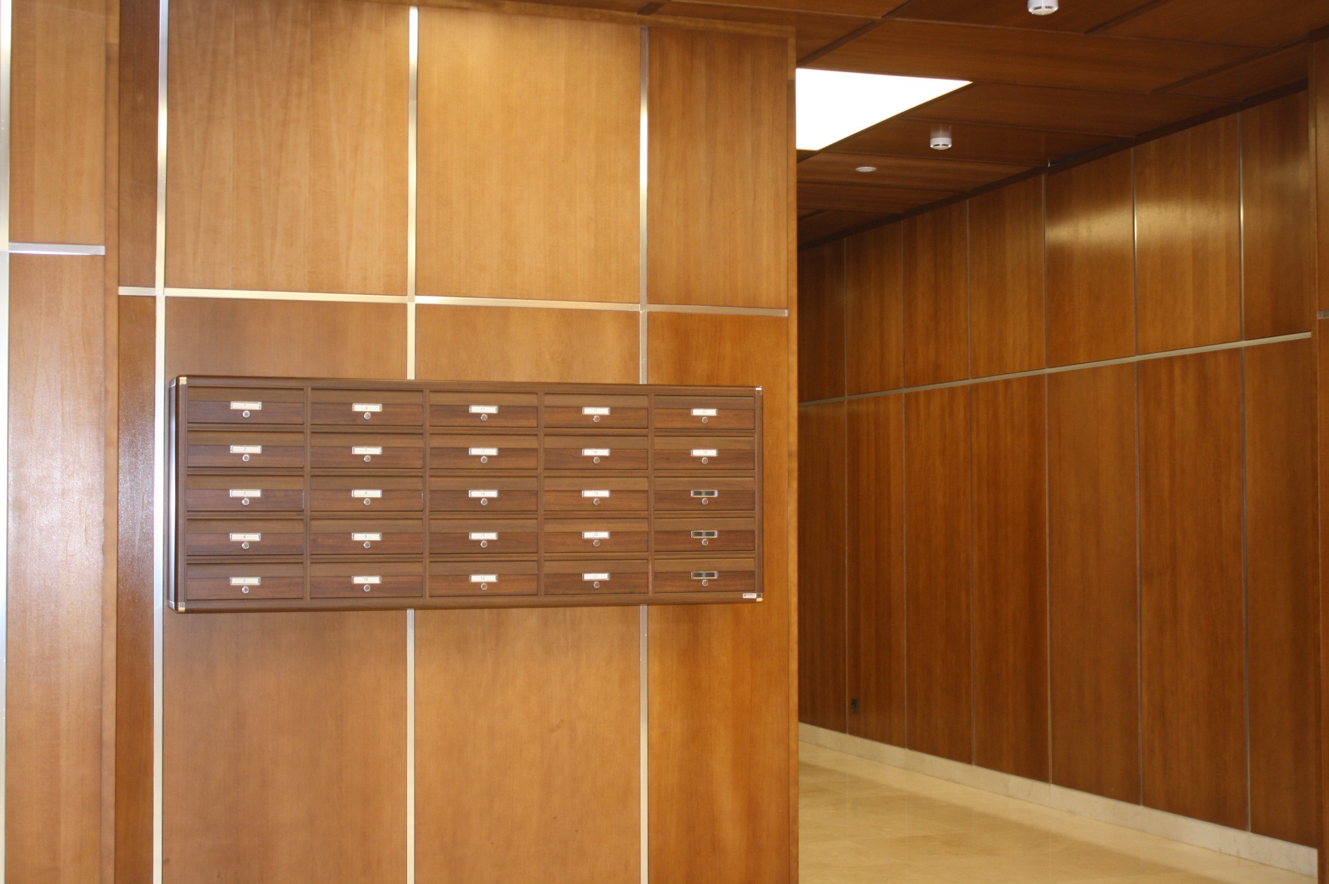 В отделке общественных пространств используются тонированное стекло, металл, природный камень и древесина испанского эвкалипта. Во входной группе имеются концептуальные почтовые ящики.