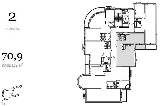 Всего в здании разместилось 348 квартир площадью от 41 до 190 кв. метров — от классических однокомнатных до роскошных двухуровневых пентхаусов, из окон которых открываются потрясающие виды. При желании, соседние квартиры можно объединять.