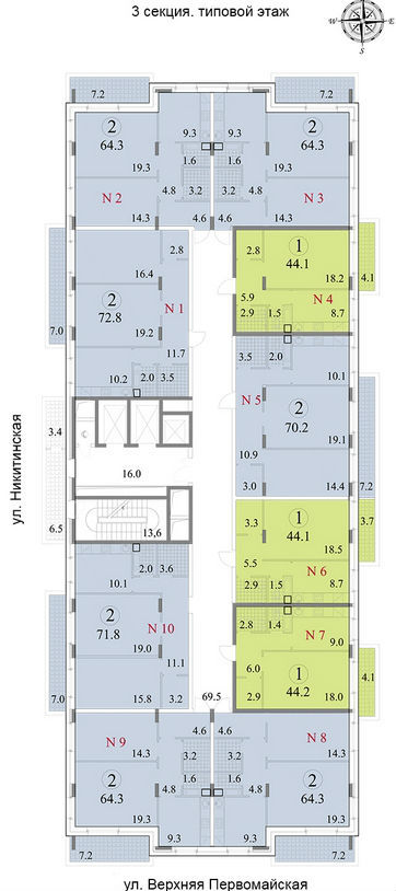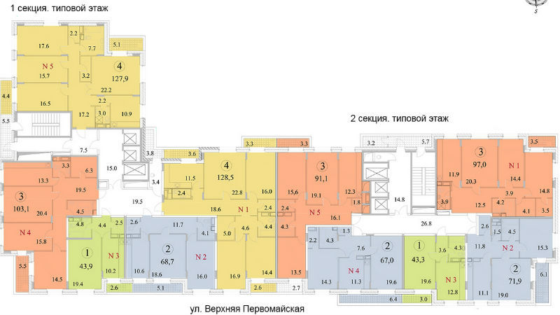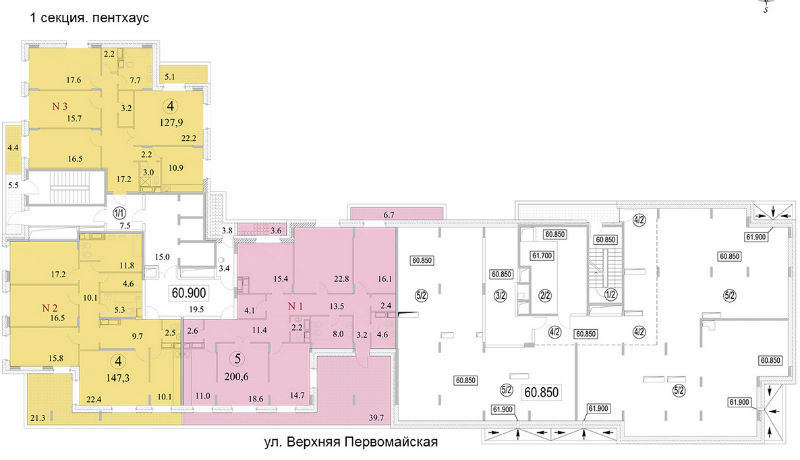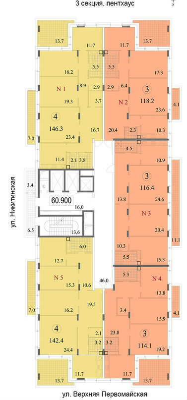 Площадь квартир:41 — 190 м2
